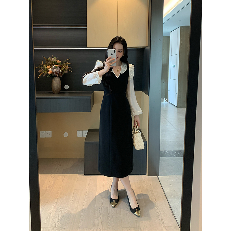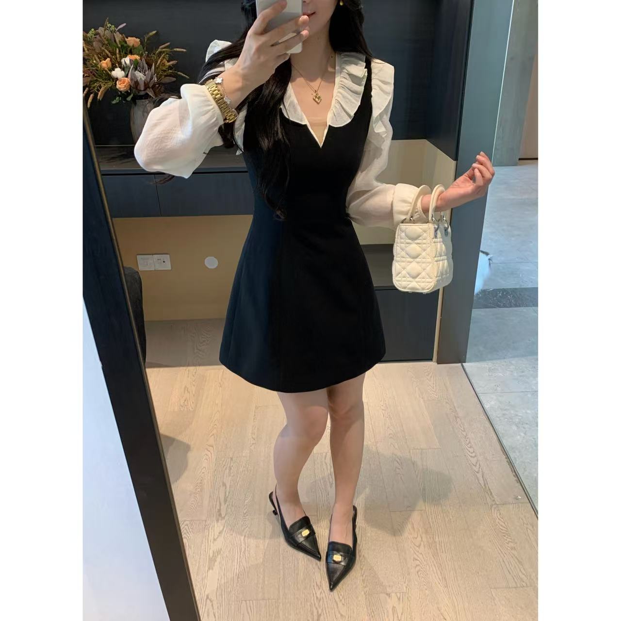 木耳邊拼接西裝 XINYI 玉蘭花 秋季 收腰顯瘦氣質裙 連衣裙女長袖由