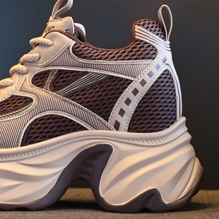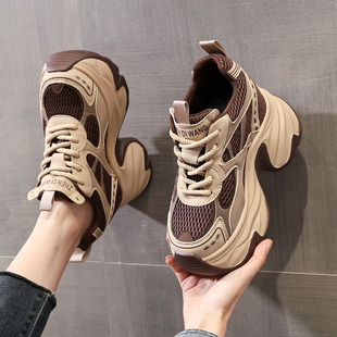 內增高女鞋 斷碼 透氣休閑百搭運動休閑鞋 女2025新款 特價 真皮老爹鞋