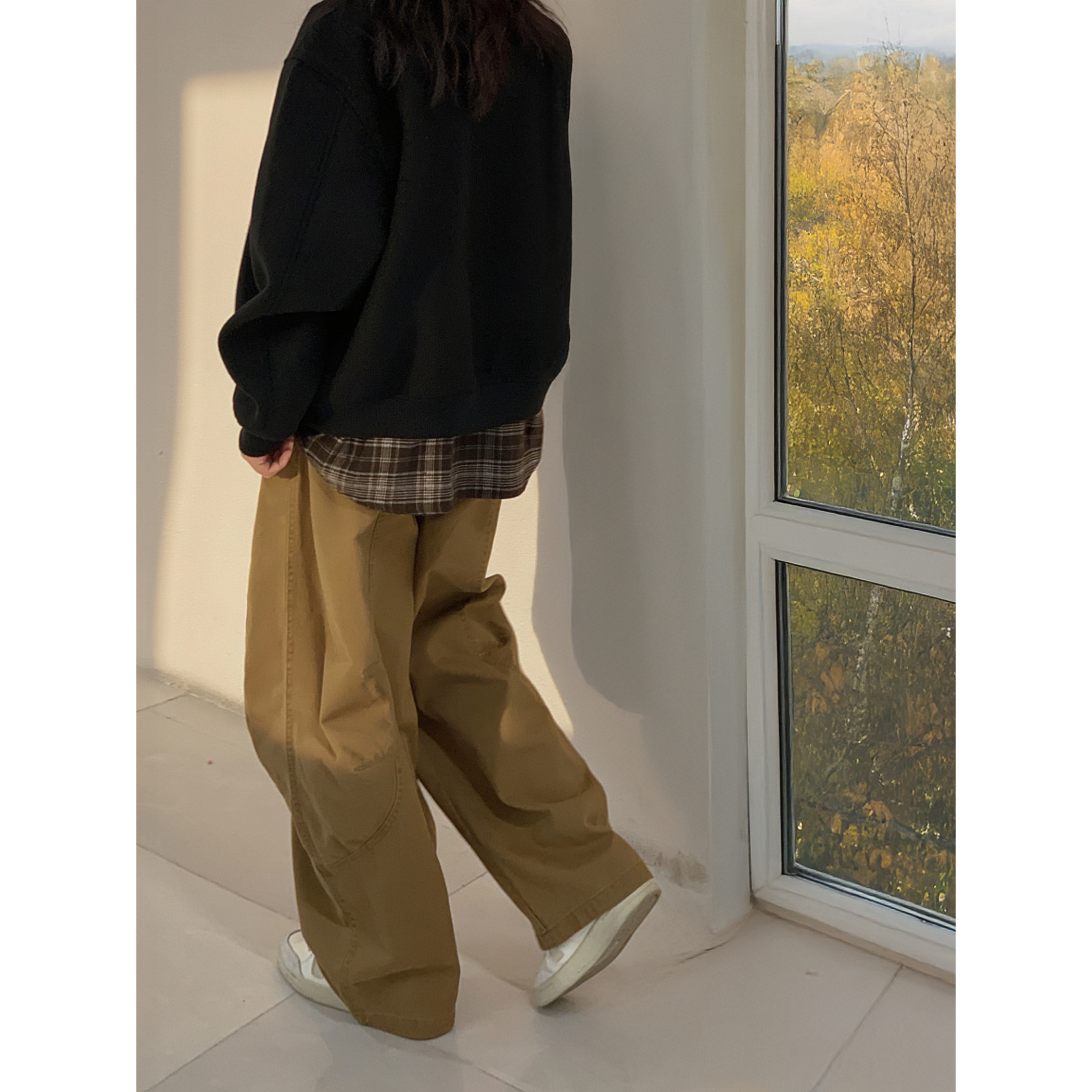 糯米褲 2025新款 高級寬松bf慵懶垂感直筒加絨休閑闊腿褲 子女春秋季