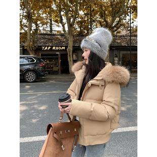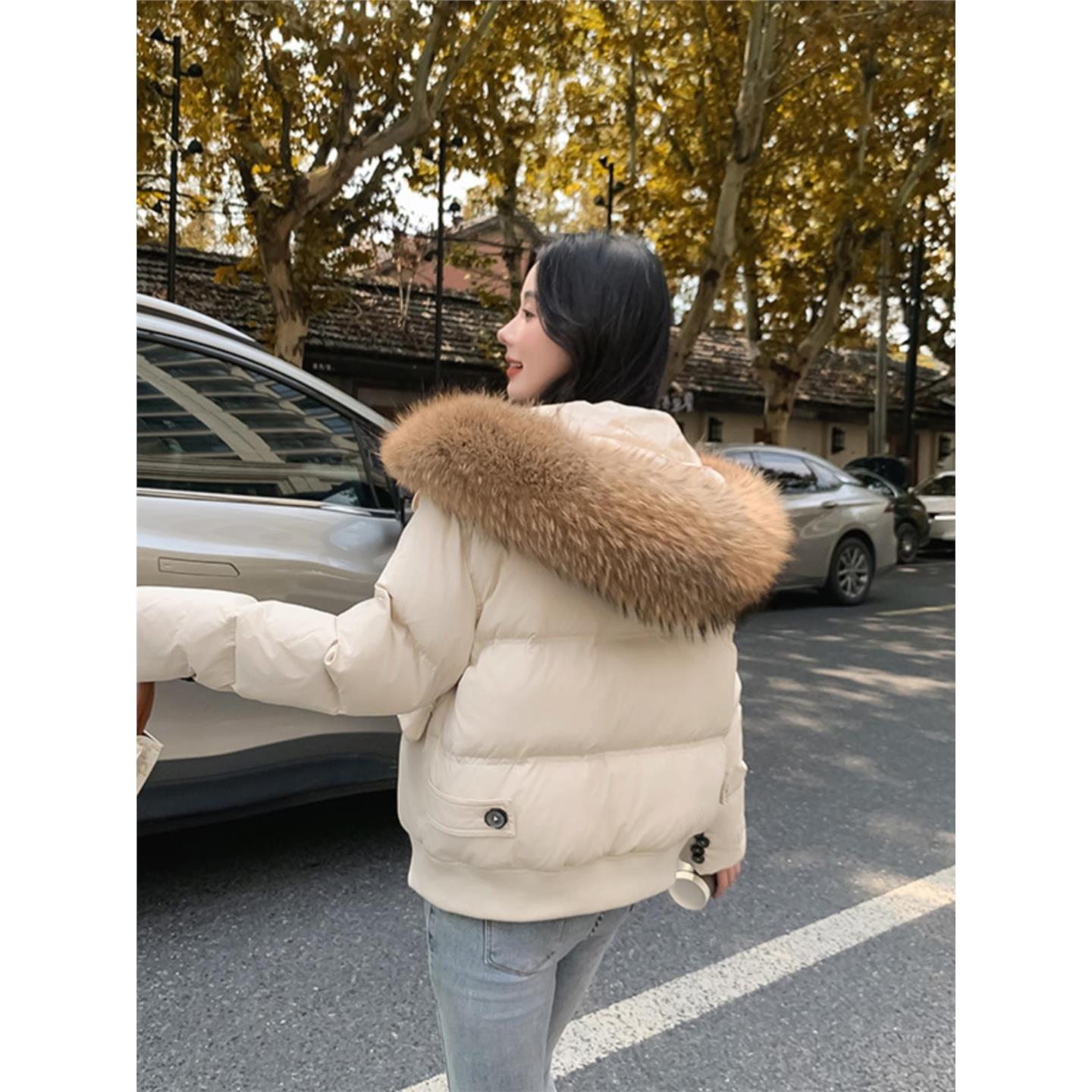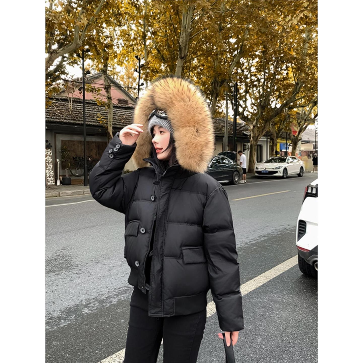 PRATOLA大毛領(lǐng)羽絨服女短款 連帽面包服寬松短外套 加厚2025新款由