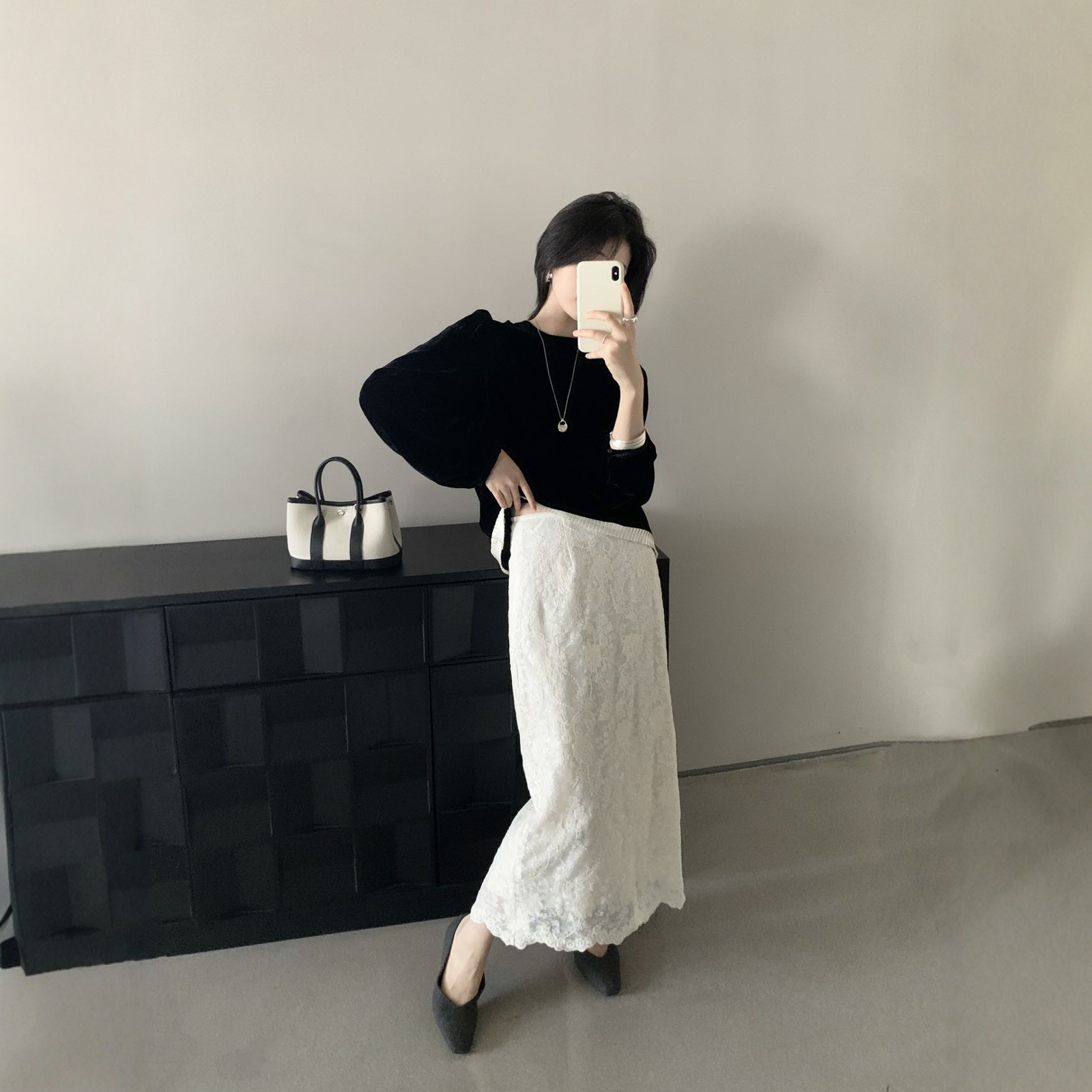 卡蔓詩30522韓系重工蕾絲高腰中長款 百搭一步裙 半身裙女2025秋季由