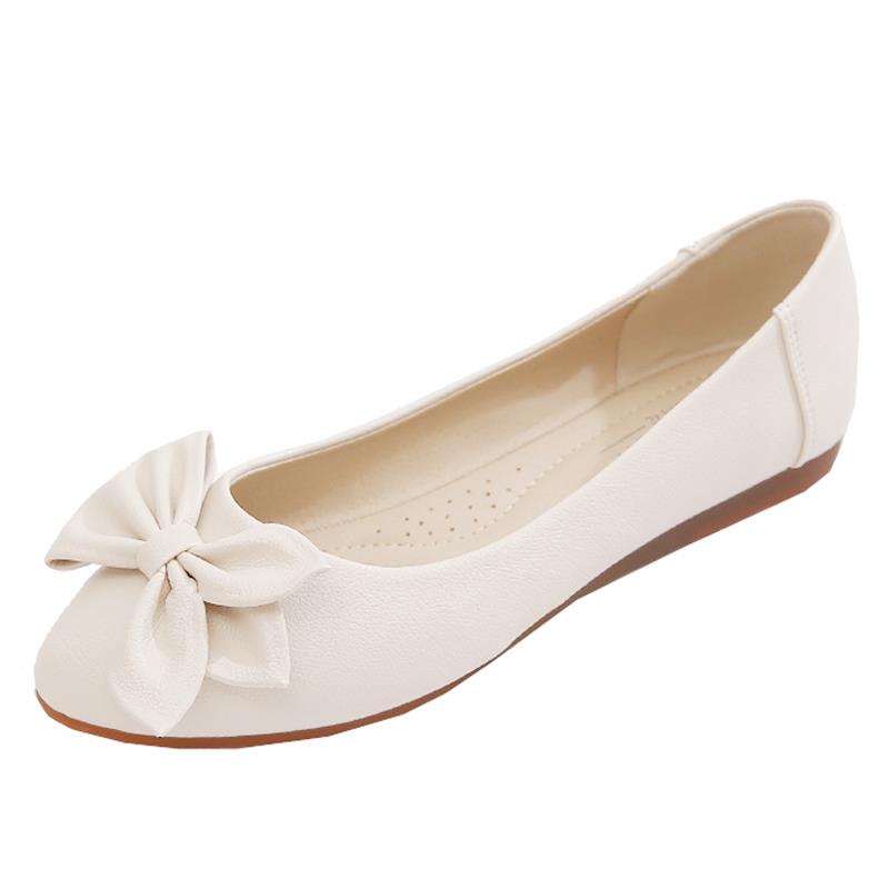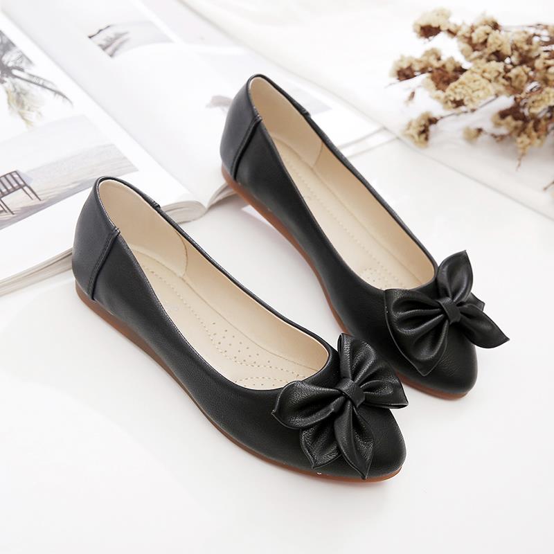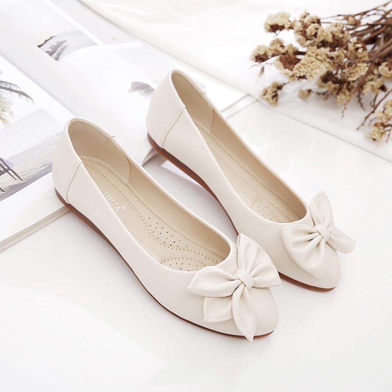 星期六真皮平底蝴蝶結淺口單鞋 新款 溫柔風配裙子豆豆鞋 女2024秋季