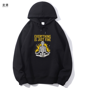 fine骷髏風(fēng)格 everything just diy 復(fù)古暗黑潮男圓領(lǐng)衛(wèi)衣帽衫由