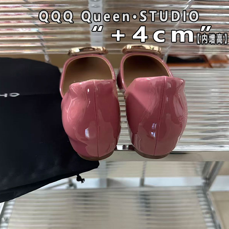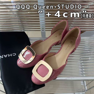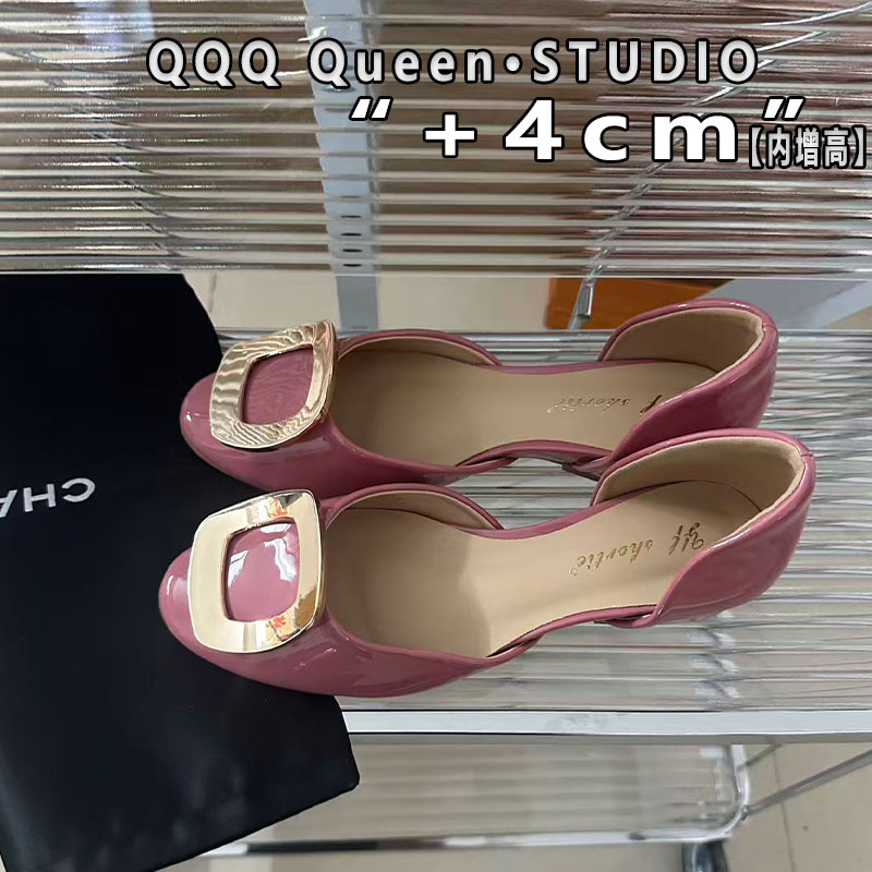 Right 4cm小個子隱形內增高圓頭方扣平底鞋 淺口單鞋 Video中空涼鞋由