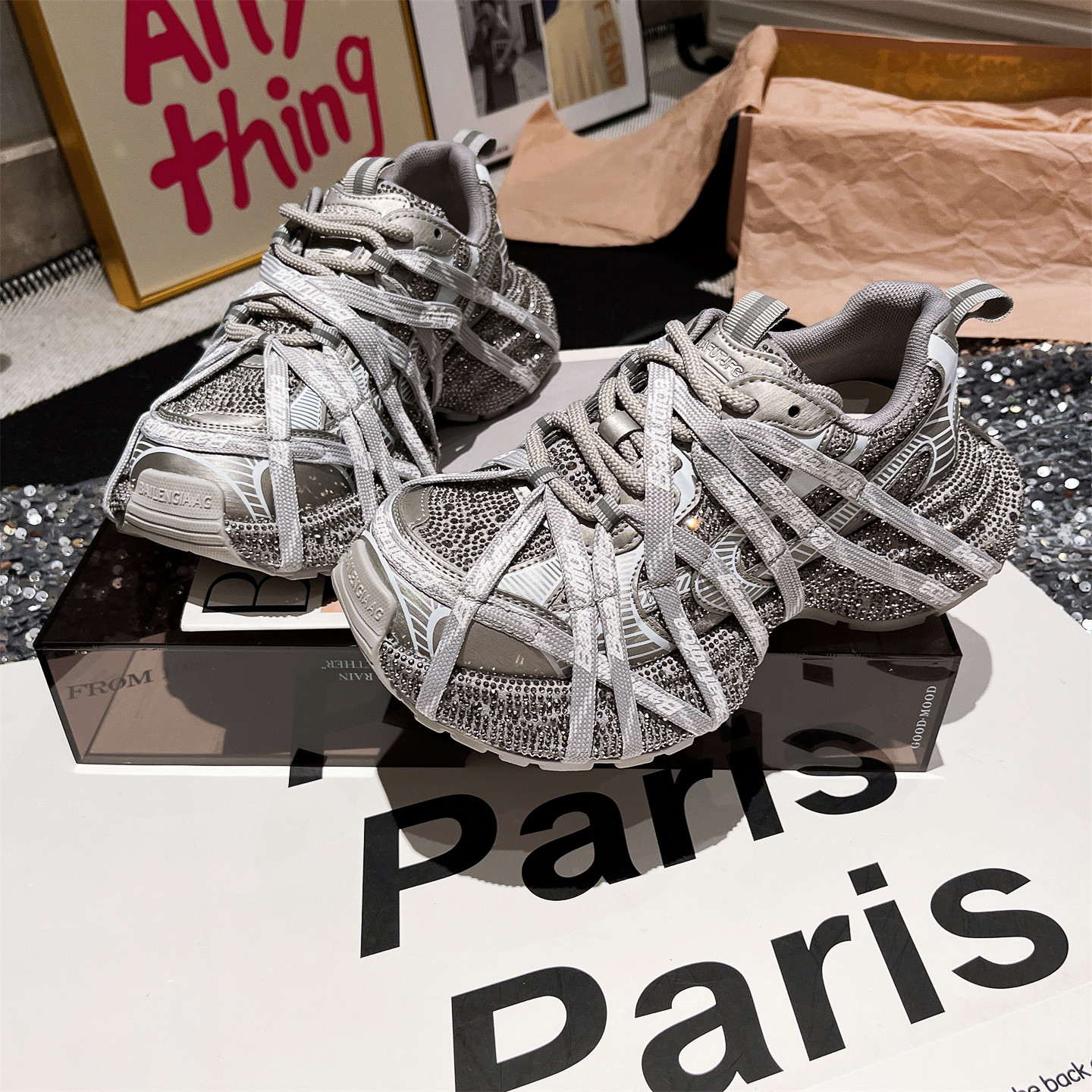 小個子炸街女鞋 運動鞋 歐貨水鉆滿鉆綁帶蜘蛛俠厚底松糕巴家老爹鞋由
