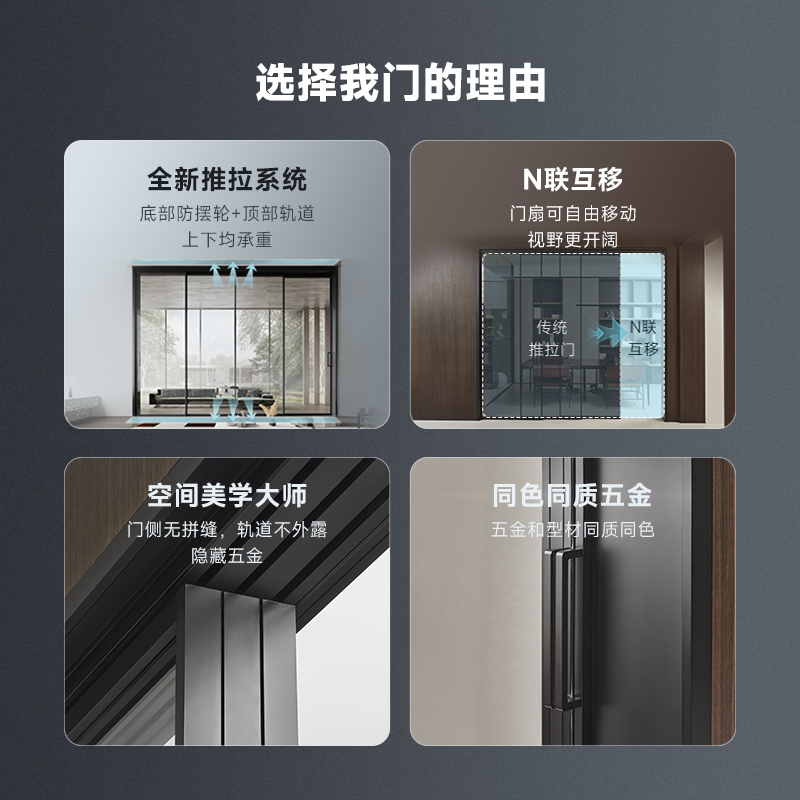 TATA木門鋁合金隱形折疊門廚房推拉門三聯動推拉門玻璃門LB105由