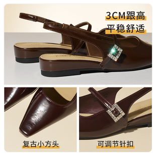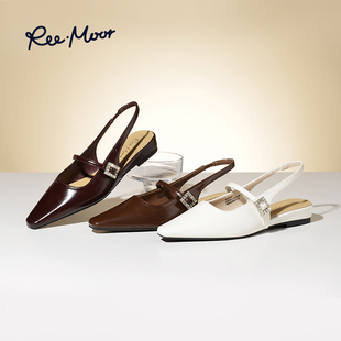REEMOOR睿慕法式 女2025新款 百搭一字帶穆勒單鞋 尖頭水鉆包頭涼鞋由