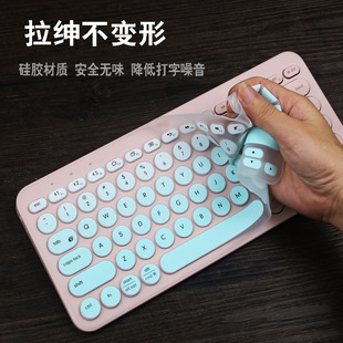 適用羅技K380復古圓鍵帽外接藍牙鍵盤膜可愛功能初學指法練習拼音由