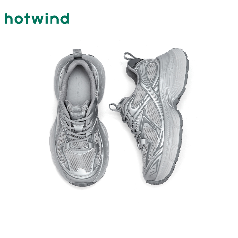 戶外慢跑厚底鞋 熱風銀色老爹鞋 女士運動網面鞋 新款 女鞋 2025年秋季由