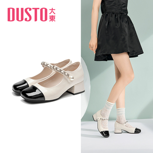 優雅拼色粗跟魔術貼中跟單鞋 大東淺口鞋 2025秋季 新款 0021 女鞋由