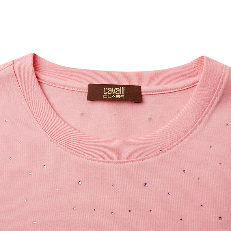 燙鉆短袖 Cavalli Class卡沃利女裝 夏季 上衣 T恤女純棉減齡刺繡半袖由