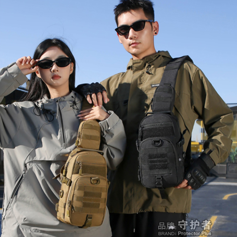 守護者胸包男帆布戶外運動戰術單肩斜挎包多功能彈弓包釣魚路亞包由