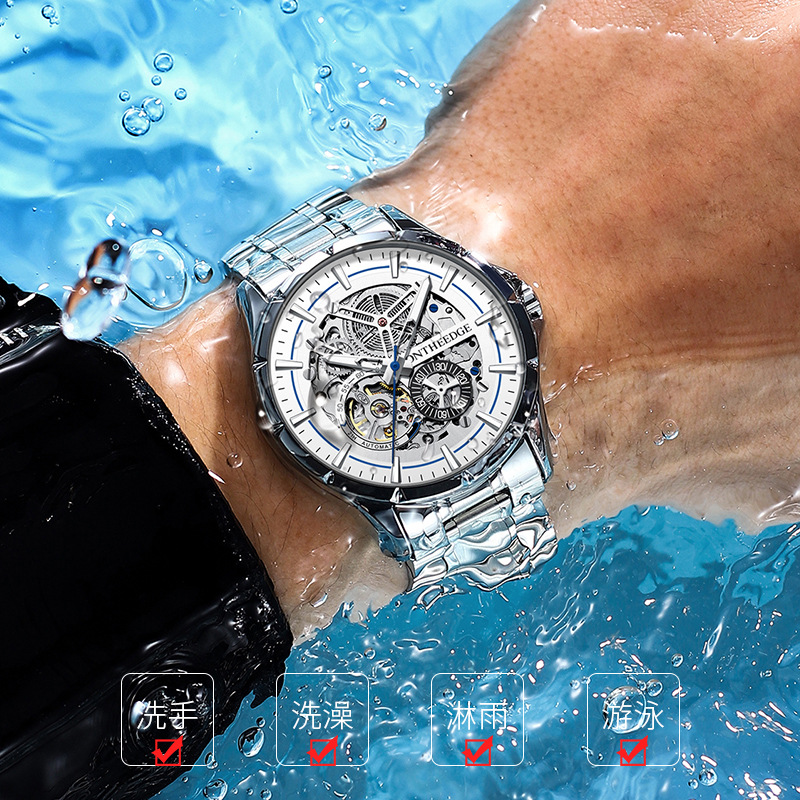防水機(jī)械表全自動鋼帶潮超薄品牌商務(wù)男國產(chǎn)腕表石英 瑞士手表男士
