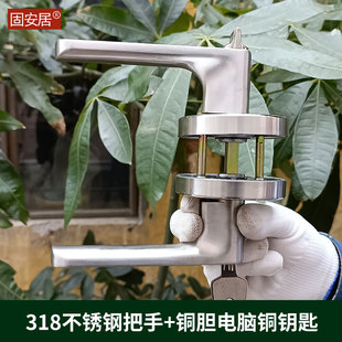 固安居不銹鋼把手三桿球形門鎖子家用靜音三柱衛生間室內廁所鎖具由