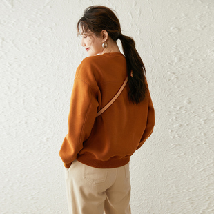 洋氣上衣套頭加厚絨衫 潮 全棉修身 即墨杏色圓領正肩衛衣女加絨冬季