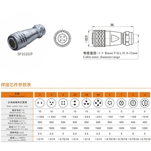 2芯3芯4針5P7芯9芯10芯防水工業連接器 威浦SF16航空插頭插座SF16由