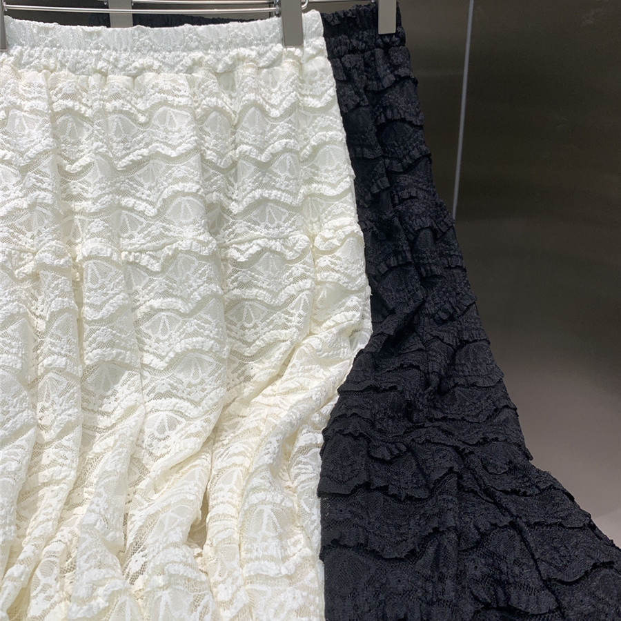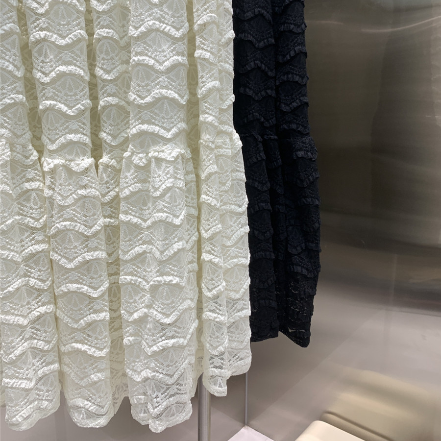 百搭中長裙A字裙韓版 顯瘦943 白色黑色蕾絲拼接蛋糕裙時(shí)尚 2025秋季由