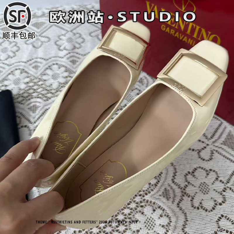 Right 女真皮2025秋季 方扣淺口單鞋 女通勤 Video米白色細(xì)跟高跟鞋由