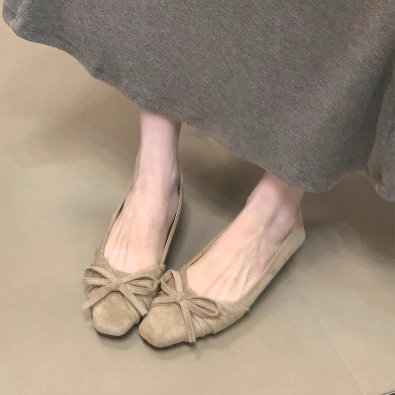 女鞋 蝴蝶結(jié)方頭淺口單鞋 時尚 平底百搭仙女風(fēng)低跟鞋 女2025秋季 新款由
