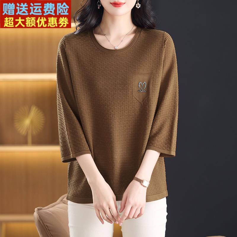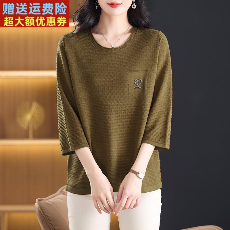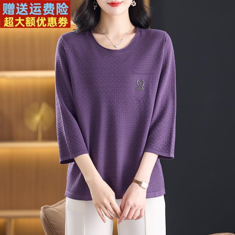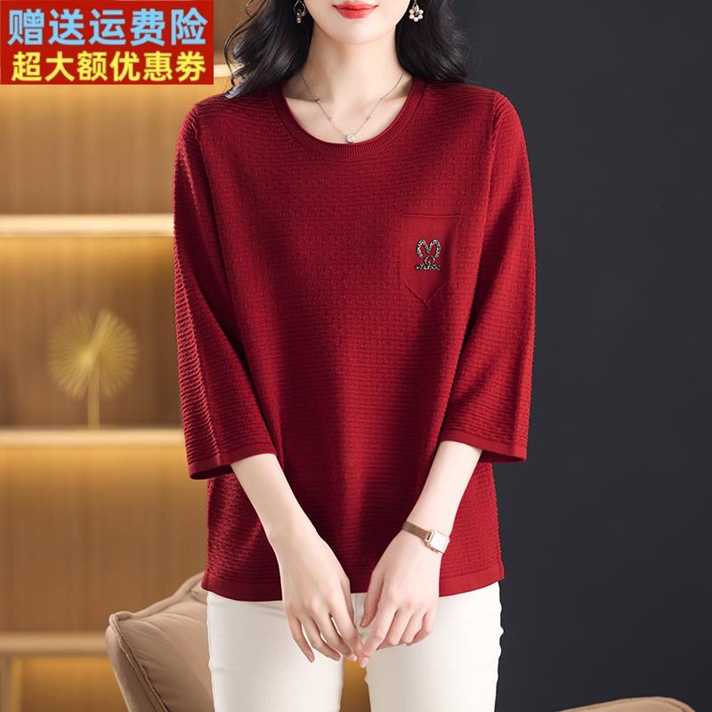 中袖 冰絲T恤紅色喜婆婆婚宴禮服媽媽春裝 2025年新款 上衣女七分袖由