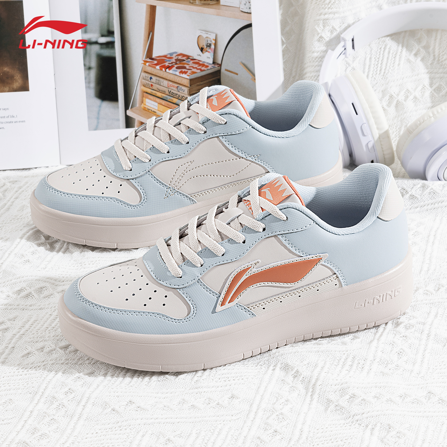 百搭低幫耐磨透氣小清新色小白鞋 李寧板鞋 女鞋 2025新款 運動休閑鞋由