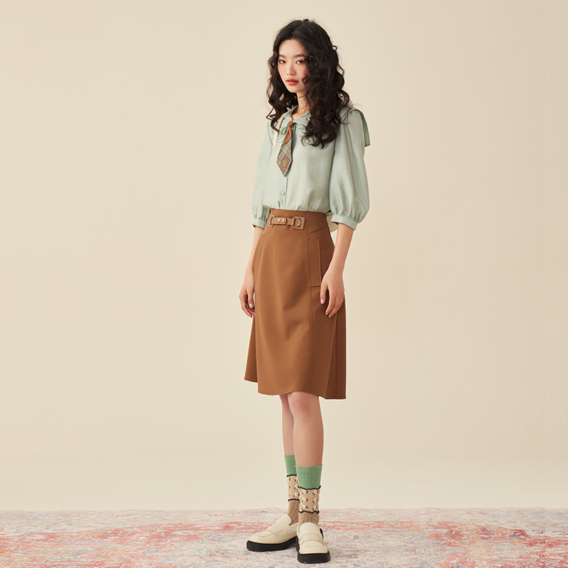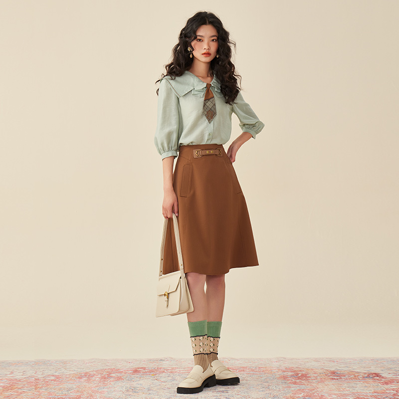 胖mm遮肚顯瘦加長(zhǎng)高個(gè)子半身裙 藝術(shù)高級(jí)感咖色伯克利百搭傘裙大碼