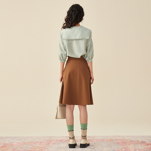 新款 百搭設(shè)計(jì)感A字裙 高腰垂感氣質(zhì)半身裙女2024秋季 PIT復(fù)古法式由