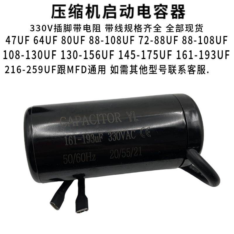 壓縮機啟動電容 330V161 193UF MFD 插腳帶電阻防爆 冰柜冷柜專用由