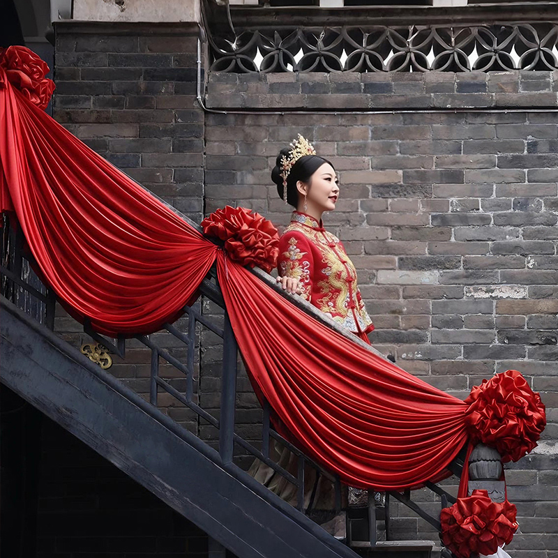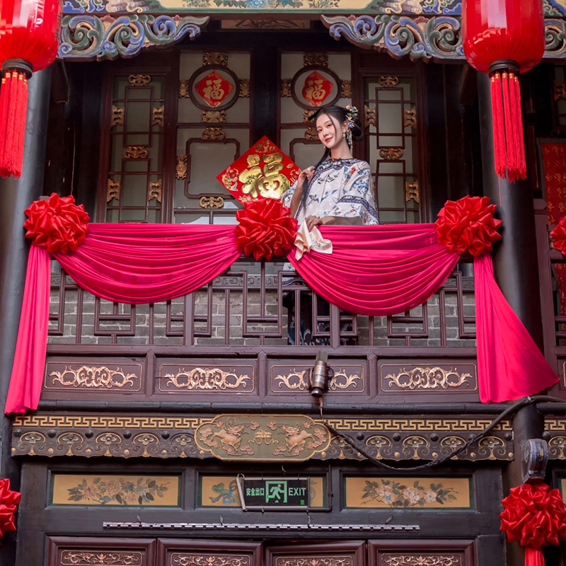 飾圍欄婚房布置拉花帷幔景區拍照打卡農村婚禮院子庭院 結婚陽臺裝由