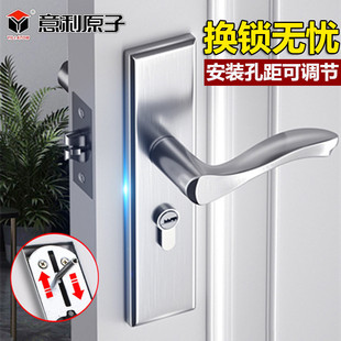 意利原子不銹鋼簡約現代家用臥室房門鎖免改孔可調單舌室內門執手由