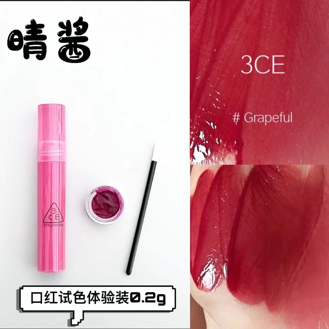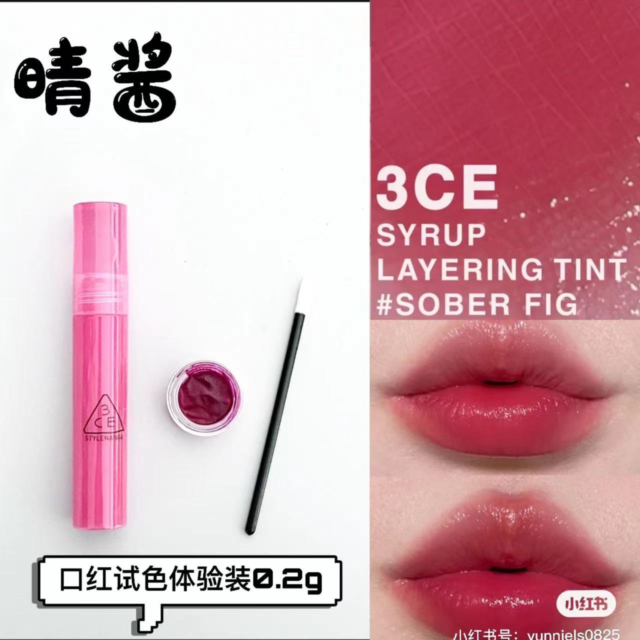 3ce唇釉糖漿果汁alive fig試色小樣youthcoral pink水光鏡面sober由