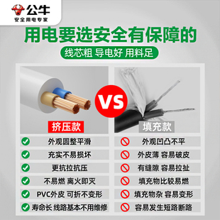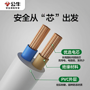 公牛電線2芯3芯家用軟線純銅芯國標(biāo)護(hù)套0.75 1.5平方rvv電纜線由
