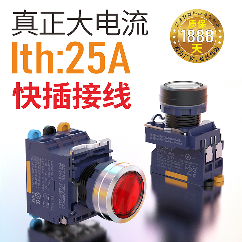 22mm金屬按鈕開關電源啟動點動自鎖帶燈LED24V防銹圓形