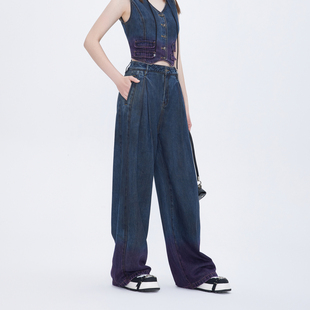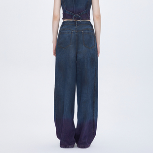 依妙EMU吊染洗水寬松牛仔女2025秋季 高腰寬松闊腿褲 長褲 新款由
