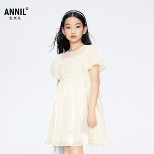 女童禮裙夏新款 商場同款 安奈兒童裝 公主裙AG423778 泡泡袖由