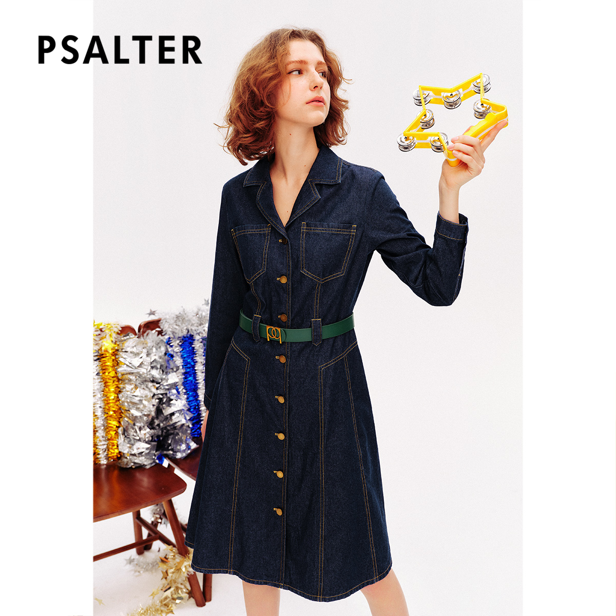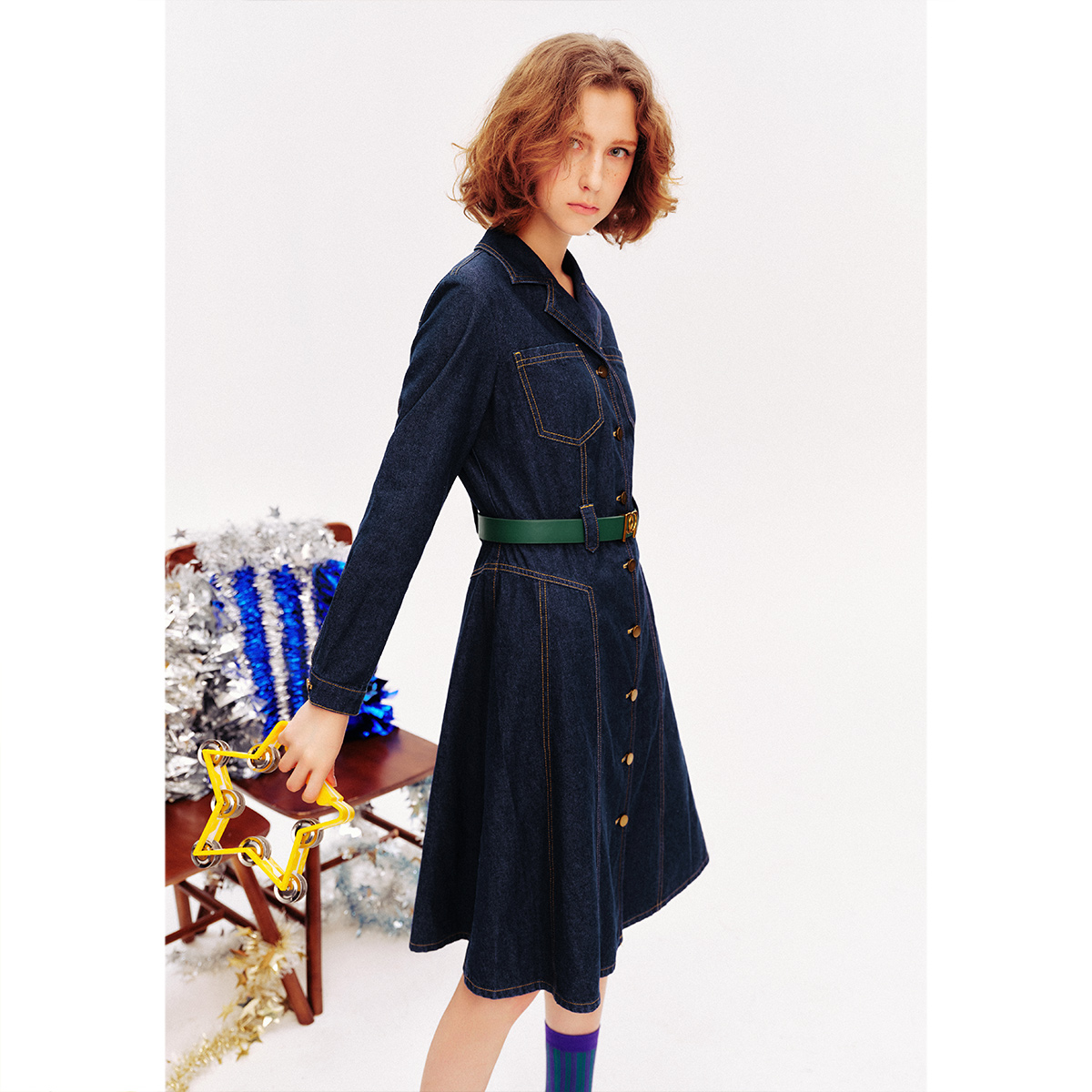 詩(shī)篇專選寬松翻領(lǐng)學(xué)院風(fēng)牛仔襯衫 裙連衣裙春款由