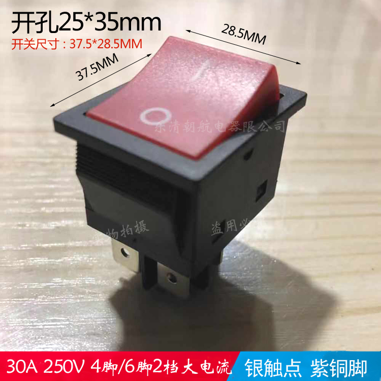 KDC2船型開關30A250V大電流帶燈紅色4腳2檔 25MM 翹板開關35由