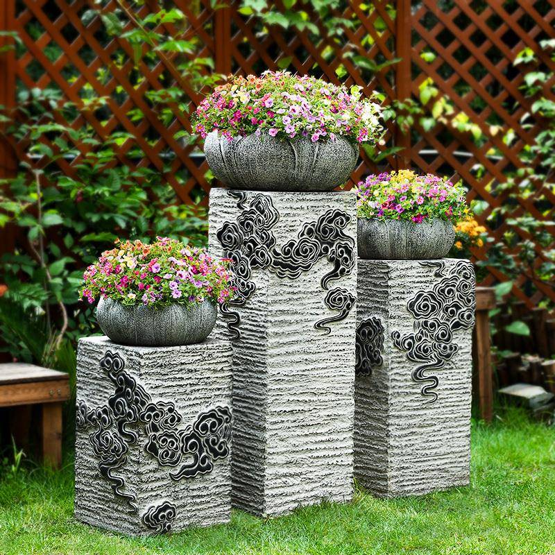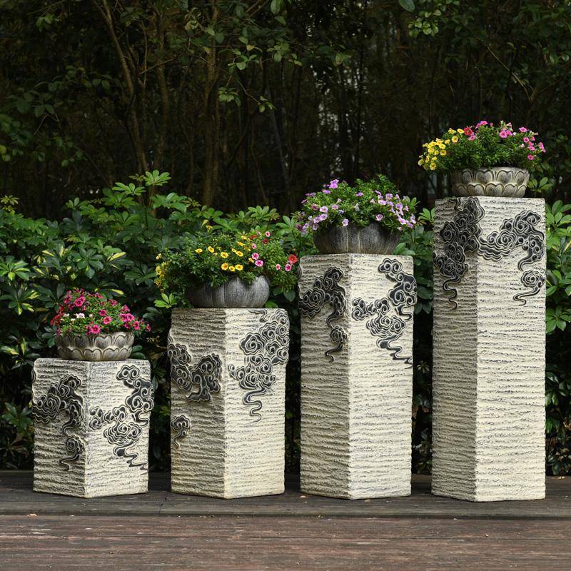 室園外盆景架子花花盆0065 IL仿石墩置戶外花架庭臺院花陽臺布中式由