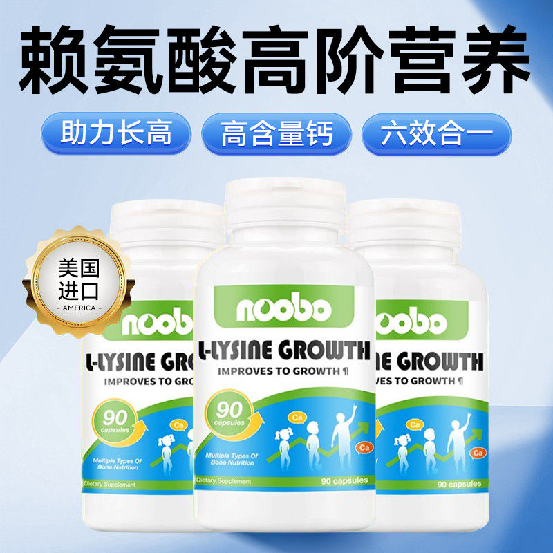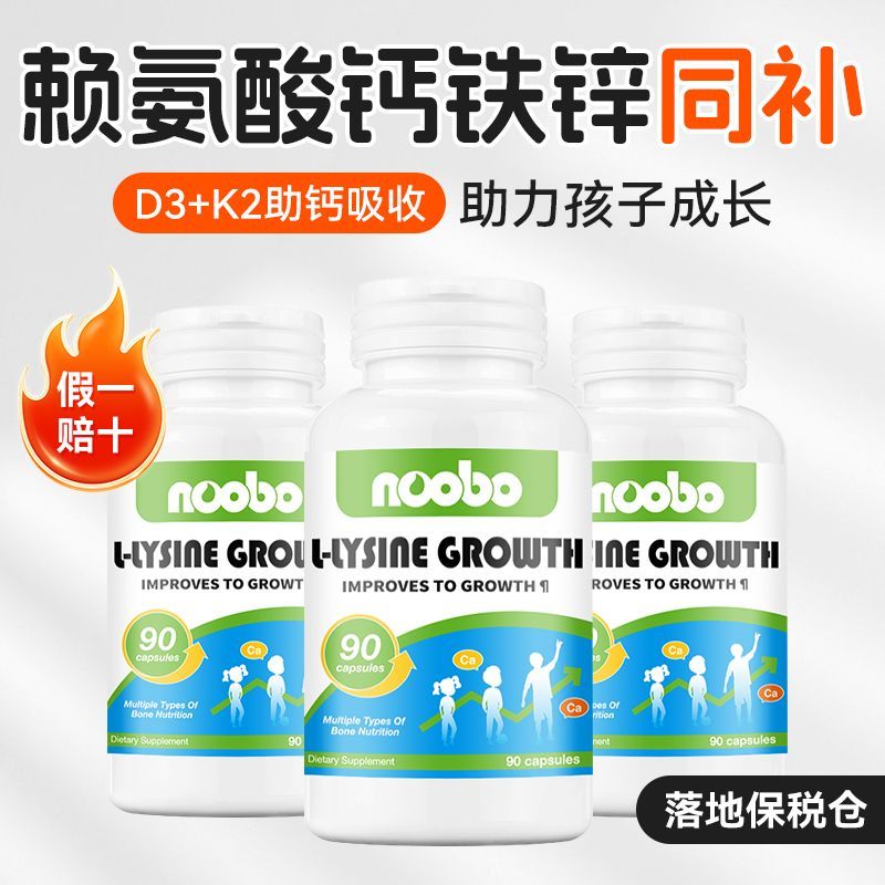 進(jìn)口NOOBO賴氨酸鈣片促進(jìn)兒童青少年初生長發(fā)育補(bǔ)鈣鐵鋅 美國原裝由