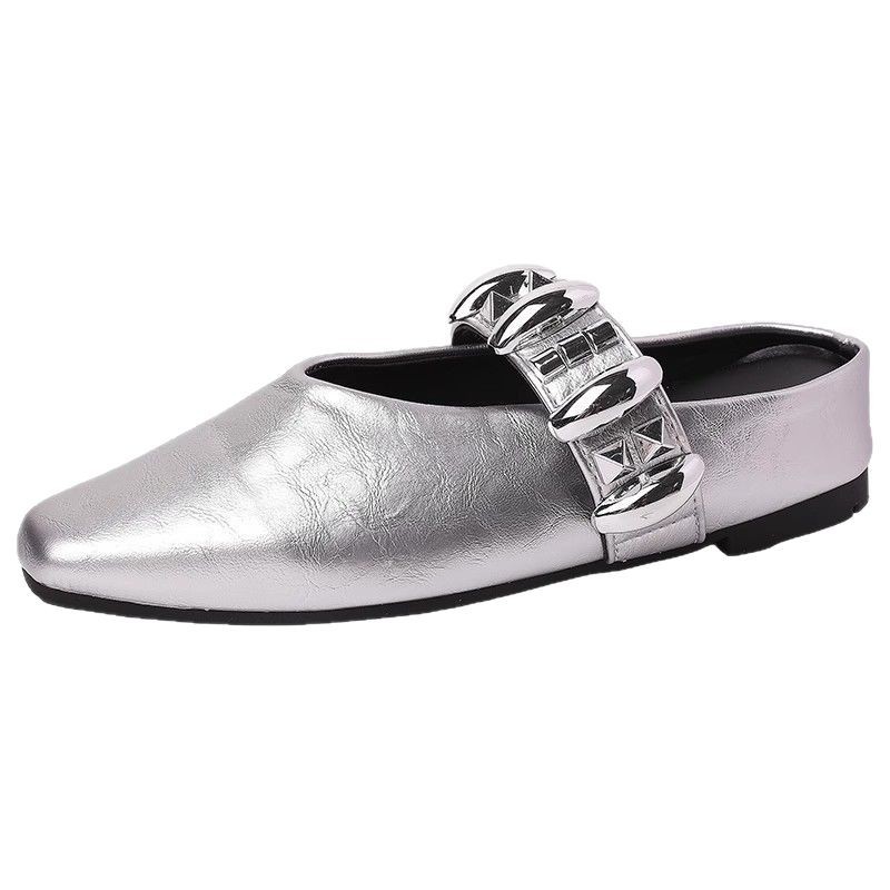 一字帶瑪麗珍鞋 夏季 新款 單鞋 復古平底尖頭 水鉆女士包頭半拖鞋由