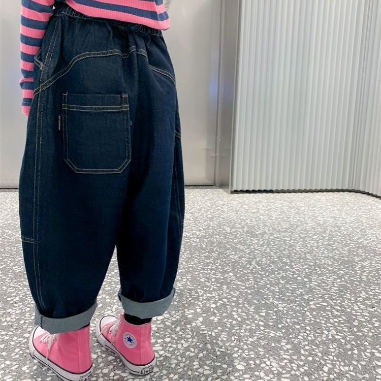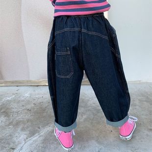女孩秋裝 女童牛仔褲 春秋款 洋氣女大童闊腿褲 子 學(xué)生寬松兒童直筒褲