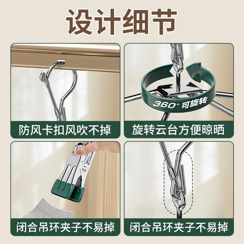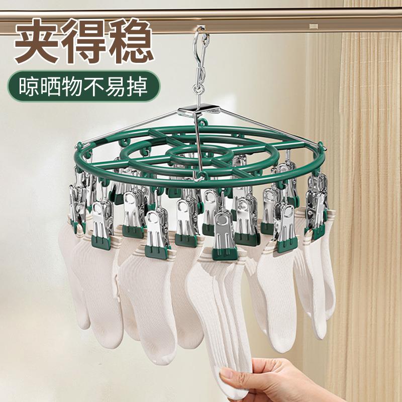 不銹鋼多夾子晾衣架陽臺家用圓形衣架多功能曬襪子神器晾曬架內衣