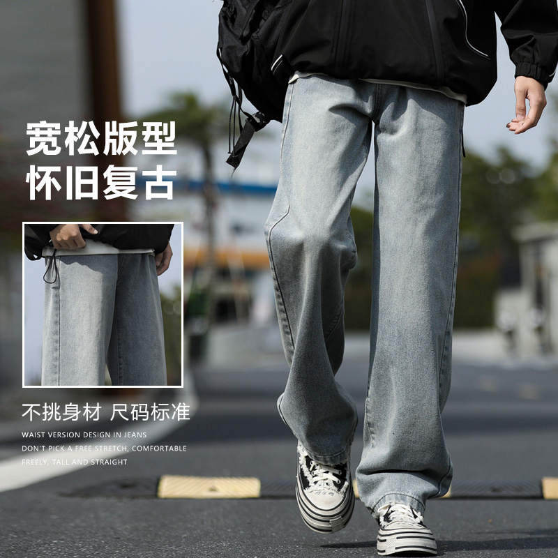 復古痞帥闊腿長褲 羅蒙美式 子男青少年 新款 秋季 高街直筒牛仔褲 男款由