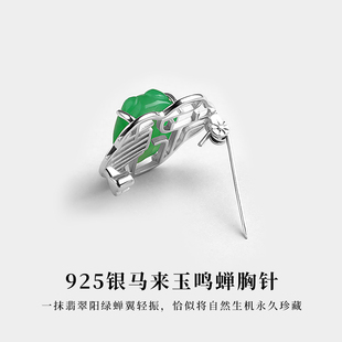 炙真銀樓925純銀鳴蟬胸針高檔女輕奢玉石胸花高級(jí)感別針大衣配飾由
