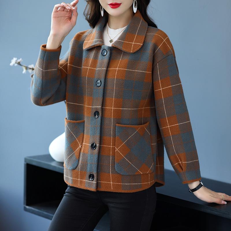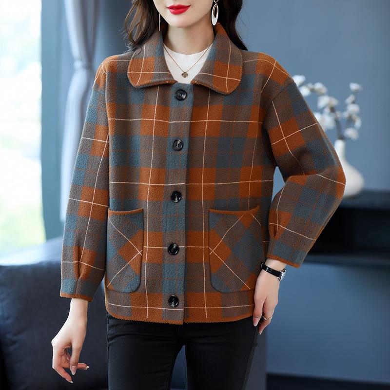 秋冬媽媽春裝 女士格子短外套春季 上衣 時尚 春秋爆款 2025年新款 女裝由