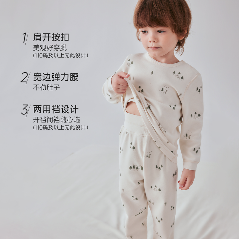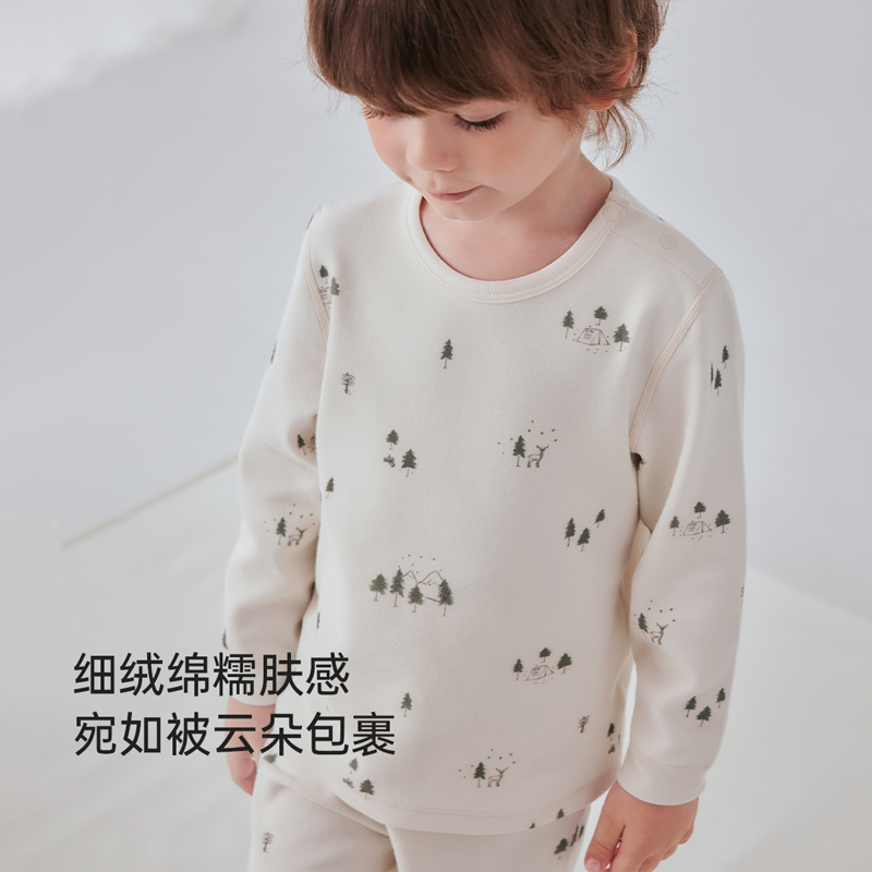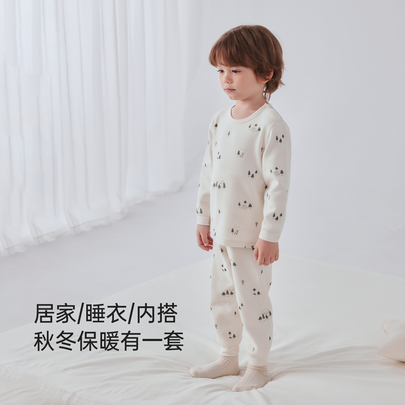 秋冬嬰幼兒加厚保暖高腰護肚家居服雪林松語 babylove寶寶內衣套裝由