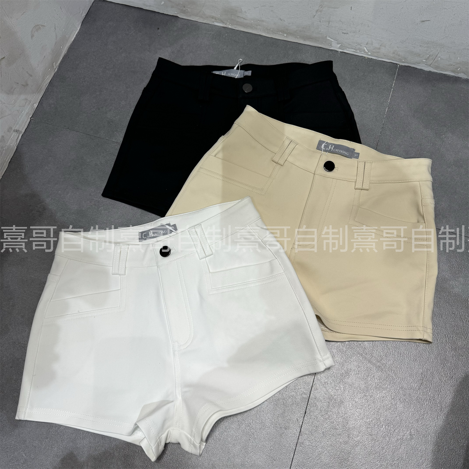 直筒短褲 顯瘦純色高腰窄版 修身 提臀辣妹百搭潮 新款 女修身 春季 韓版由