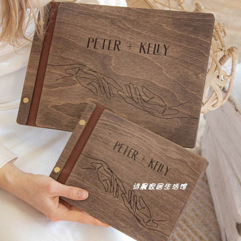 復古婚禮木質來賓簿婚禮相冊簽到本留言本情侶周年紀念商務禮物由