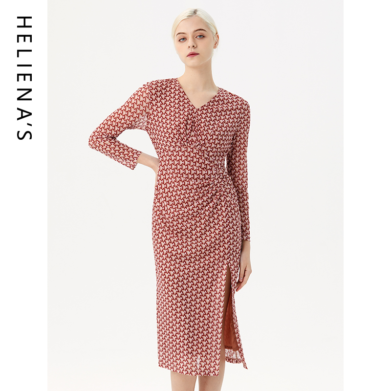 開叉顯瘦連衣裙商場同款 H232OP85 連衣裙收腰個(gè)性 海蘭絲奢睿女裝由