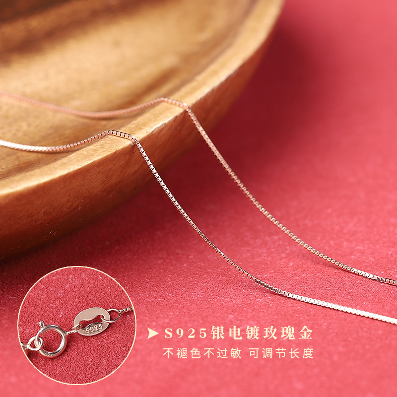 999純銀項鏈女銀鏈子無吊墜925鎖骨鏈裸鏈蛇骨替換素鏈銀飾繩配件